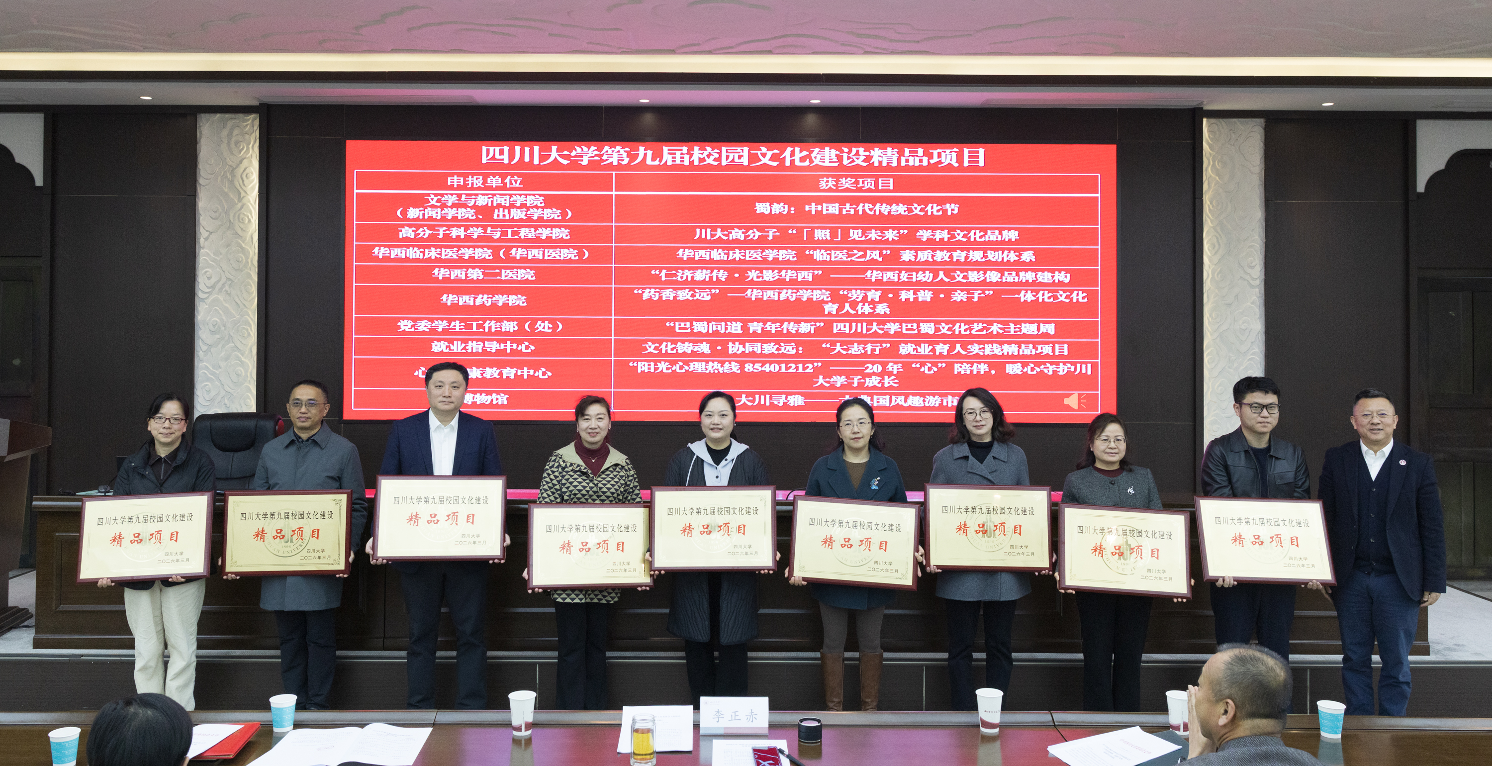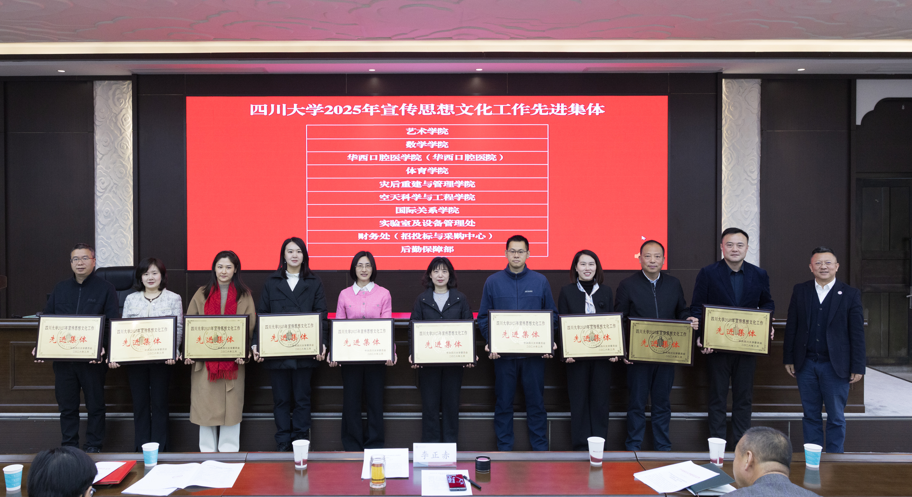 会议表彰了学校第九届校园文化建设精品项目和2025年学校宣传思想文化工作先进集体、先进个人及优秀学生,李正赤为获奖单位和个人颁奖。