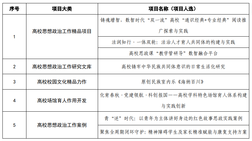 根据教育部、省教育厅关于做好2026年度高校思政工作精品建设项目申报工作相关要求,经学校党委组织部、党委宣传部、党委统战部、学生工作部、校团委、教师工作部、教务处、社会科学研究处、研究生工作部、心理健康教育中心、马克思主义学院等单位集中组织评审,评选出以下项目(详情附后),现予以公示。